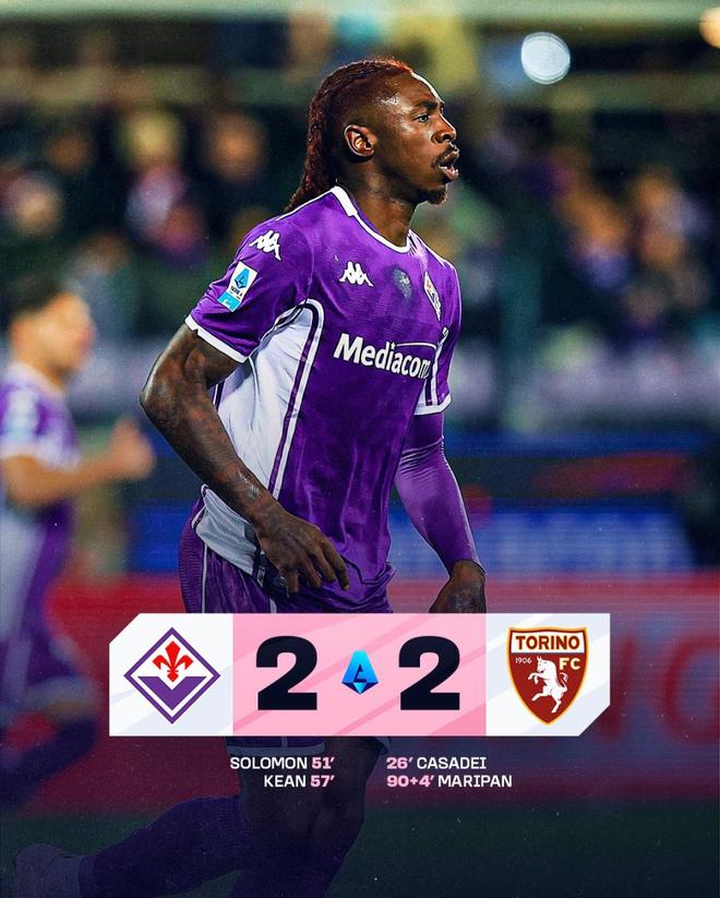 紫百合坐镇主场迎战都灵,原本已经无限接近一场久违的胜利,却在第94分钟被一记头球彻底击碎希望,2-2,被硬生生从胜利线上拽了回来。